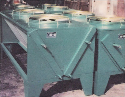 Fabricated using round copper tubes and fins with fabricated back-plate and metal casing, these heat exchangers can reject heat, at an ambient temperature of 36°C - 42°C, up to 5MW. For harsh environment, special fabrications using copper fins or blue-coated aluminum fins are also accepted.
